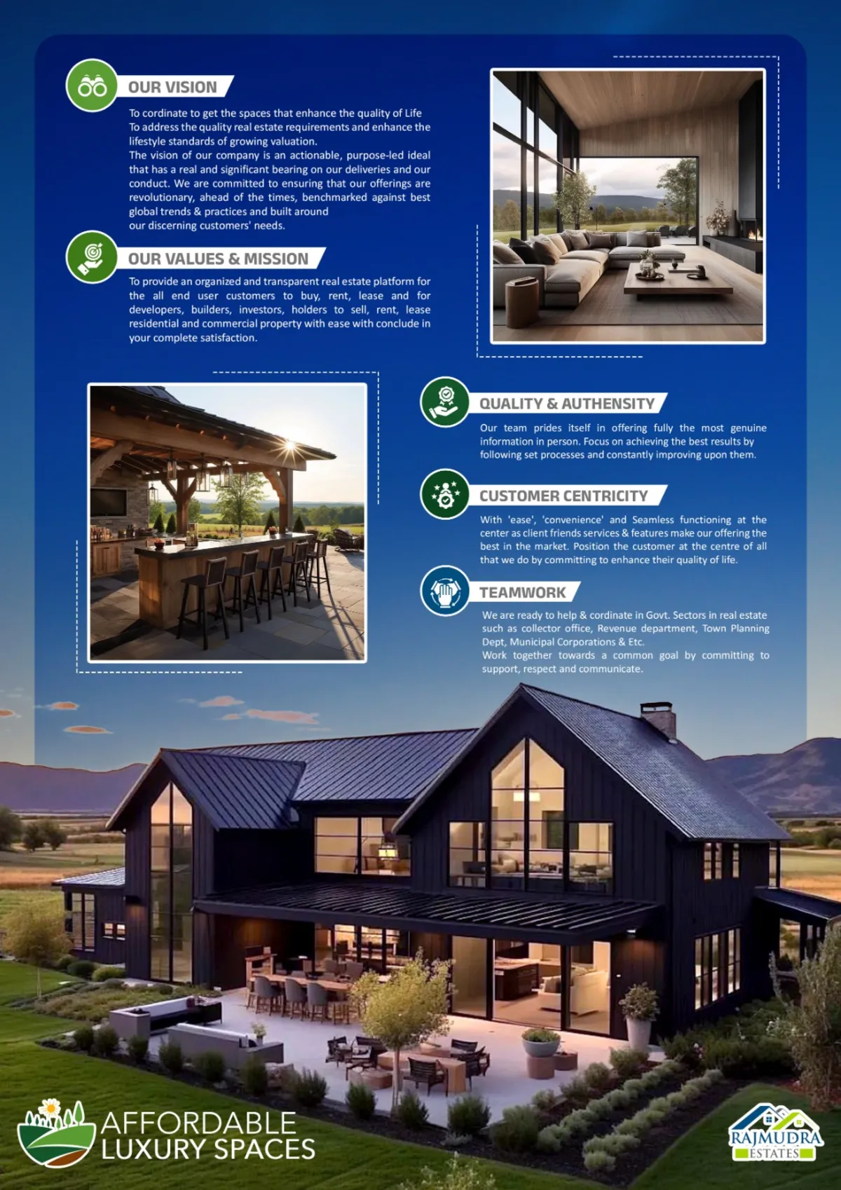 To coordinate to get quality real estate requirements and enhance the lifestyle standards of growing valuation.